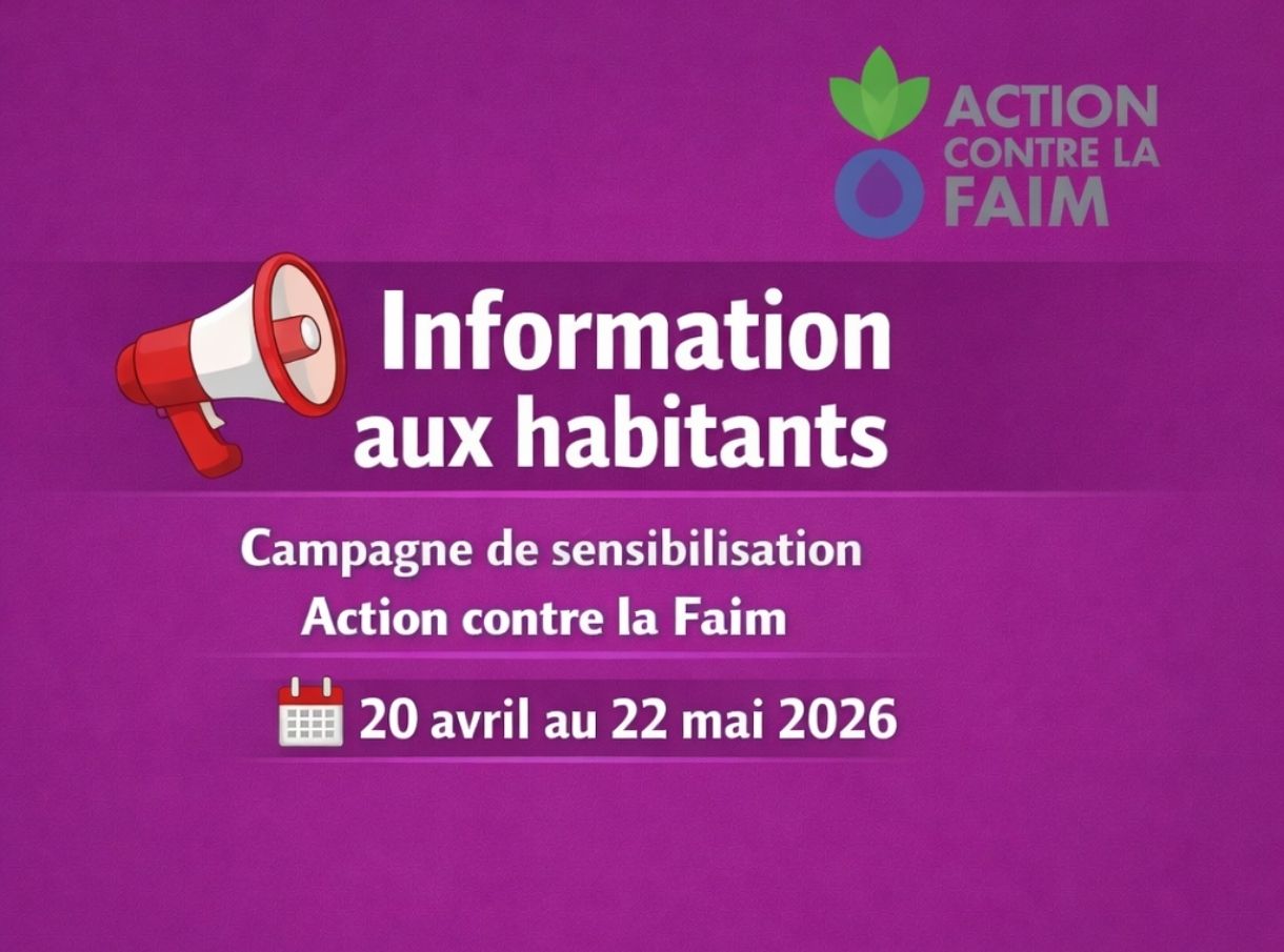Une campagne de sensibilisation et de collecte de dons sera prochainement menée sur notre territoire par l’association 𝐴𝑐𝑡𝑖𝑜𝑛 𝑐𝑜𝑛𝑡𝑟𝑒 𝑙𝑎 𝐹𝑎𝑖𝑚.